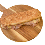 Pan suave ralleno con jamon cocido, queso fundente y salsa alioli