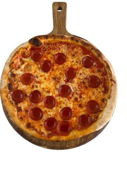 Tomate, Mozzarella, Salami Picante, aceite picante